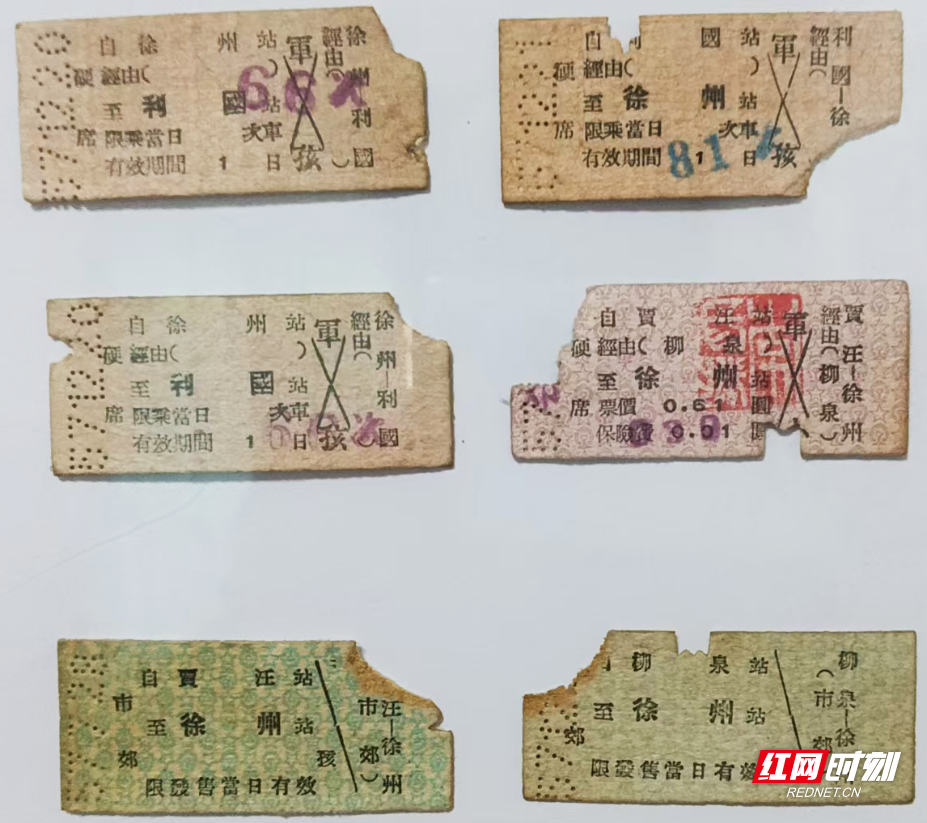 這里還有全國(guó)獨(dú)一無(wú)二的通往韶山的列車(chē)“特價(jià)客票”,也有1957年僅使用過(guò)半年多的簡(jiǎn)體字與繁體字混合在一起的特殊火車(chē)票。除此之外,一組6張第一代火車(chē)票更是引起了眾多參觀者尤其是年輕人的注意:僅有大拇指那么大的小小硬紙板卡片的一端,有著密密麻麻的細(xì)小針孔,那些排列有序的針孔顯現(xiàn)出兩個(gè)一組的阿拉伯?dāng)?shù)字。懂行的人說(shuō),這幾個(gè)數(shù)字代表著乘客“限當(dāng)日發(fā)售乘車(chē)有效”所持車(chē)票的具體日期。而陳列館里展示的那幾張火車(chē)票,第一組數(shù)字都是“57”,而且票面上全部是如今大多數(shù)人認(rèn)不全的繁體字,表明它們大都是1957年12月從徐州至賈旺,柳泉至利國(guó)等不同的火車(chē)站售出的老火車(chē)票。