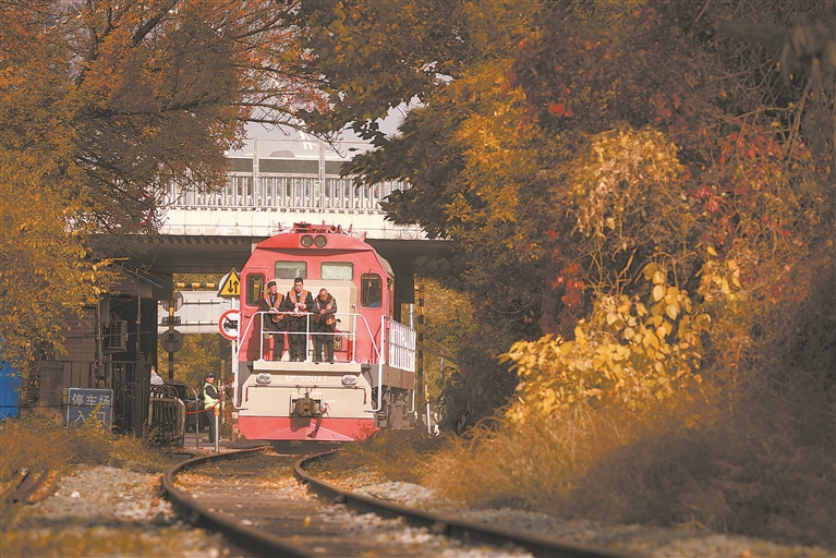 故事:一條專用鐵道線融入城市之中,機車緩緩駛過,在彩葉組成的樹林中盡顯秋韻之美
