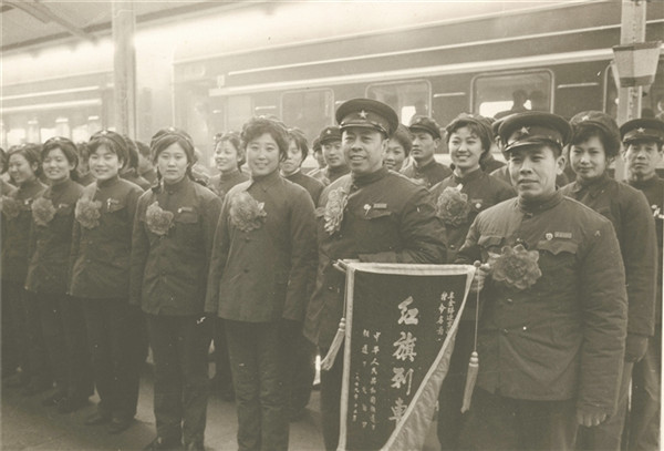 1979年10月26日,青島站的站臺上人山人海,熱鬧非凡,青島列車段青京車隊(duì)京四組的職工個個身著整潔干凈的制服,胸前高掛大紅花,昂揚(yáng)挺拔地站在列車前。時任青京車隊(duì)隊(duì)長甄元晟和書記劉秉義接過象征著全路最高殊榮的“紅旗列車”錦旗,心中是滿滿的自豪。