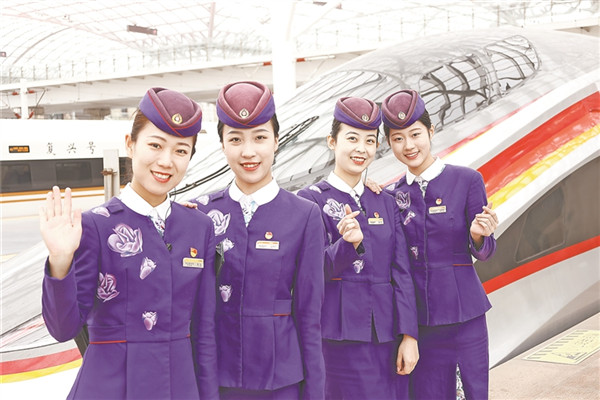 “春風(fēng)得意馬蹄疾,一日看盡長安花。”唐代詩人孟郊的美好期盼,在千年之后成為現(xiàn)實(shí)。煥然一新的車廂環(huán)境、一日千里的運(yùn)行速度、詮釋著不同地域特色的鐵路制服,令“中國高鐵”這張名片愈發(fā)亮麗。年輕的“動哥”“動姐”穿著青春時尚的鐵路制服,吸引萬千旅客目光。時代感、國際范兒逐漸成為高鐵時代新式鐵路制服的特色。