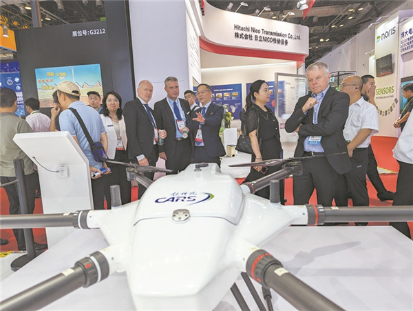 中國鐵道科學研究院集團有限公司自主研發的鐵路長續航多旋翼無人機吸引眾人目光。本報記者 唐克軍 攝