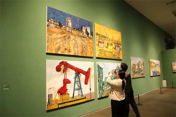 梁宇表示,這是他第8次個人展覽,與之前的展覽相比有突出的變化。在本次展覽中,作品內容更多元,創作風格更豐富,既有記憶中那些永不消逝的鐵路風景,比如信號燈系列、車站系列、火車系列等;也有心中主觀創造的風景,如紅房子系列、道口系列;還有新近創作的現實風景,如克拉瑪依系列。