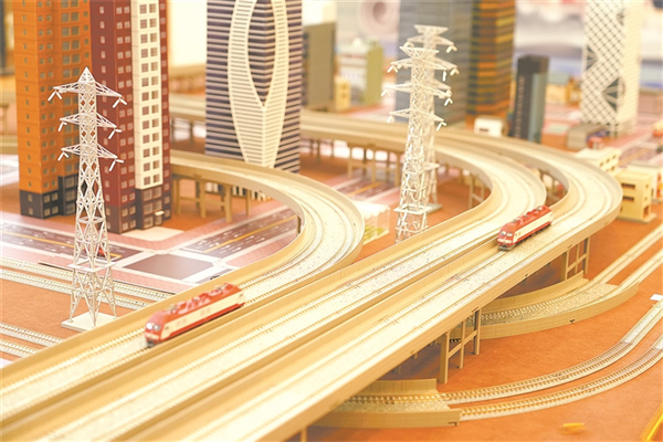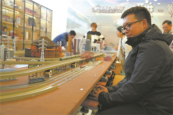 來自天津的火車迷王先生特地帶著心愛的火車模型趕來,在沙盤上模擬運行。