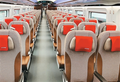 中國鐵道科學研究院首席研究員趙紅衛介紹,作為新一代高速動車組,CR450AF/BF復興號動車組采用8輛編組,最高運營時速達400公里。該車型通過技術優化,實現運行阻力降低22%,牽引效率提升4%,整體減重10%,能耗下降20%,以更高速、更安全、更節能、更舒適、更環保、更智能等特點,為用戶提供更美好的出行體驗。